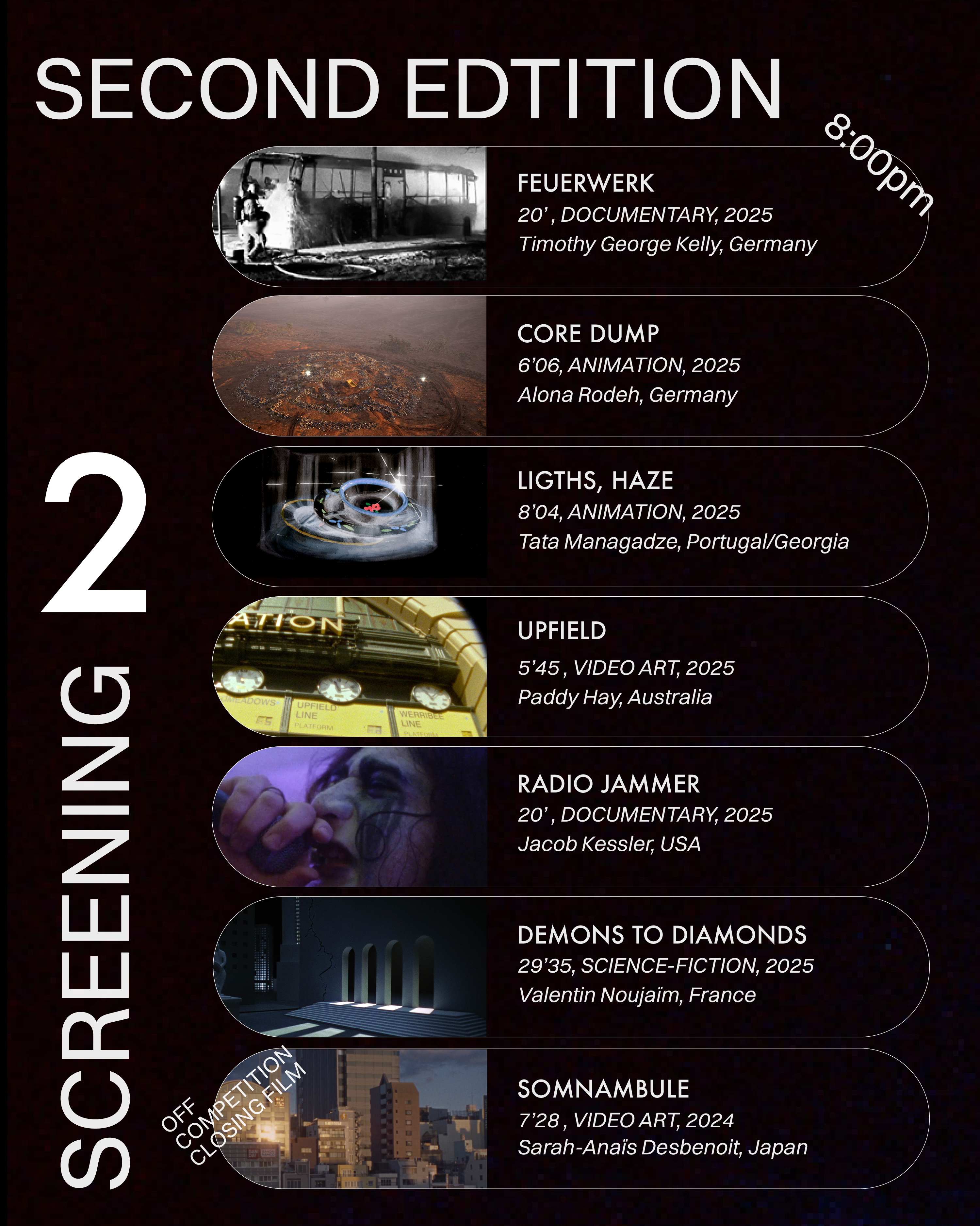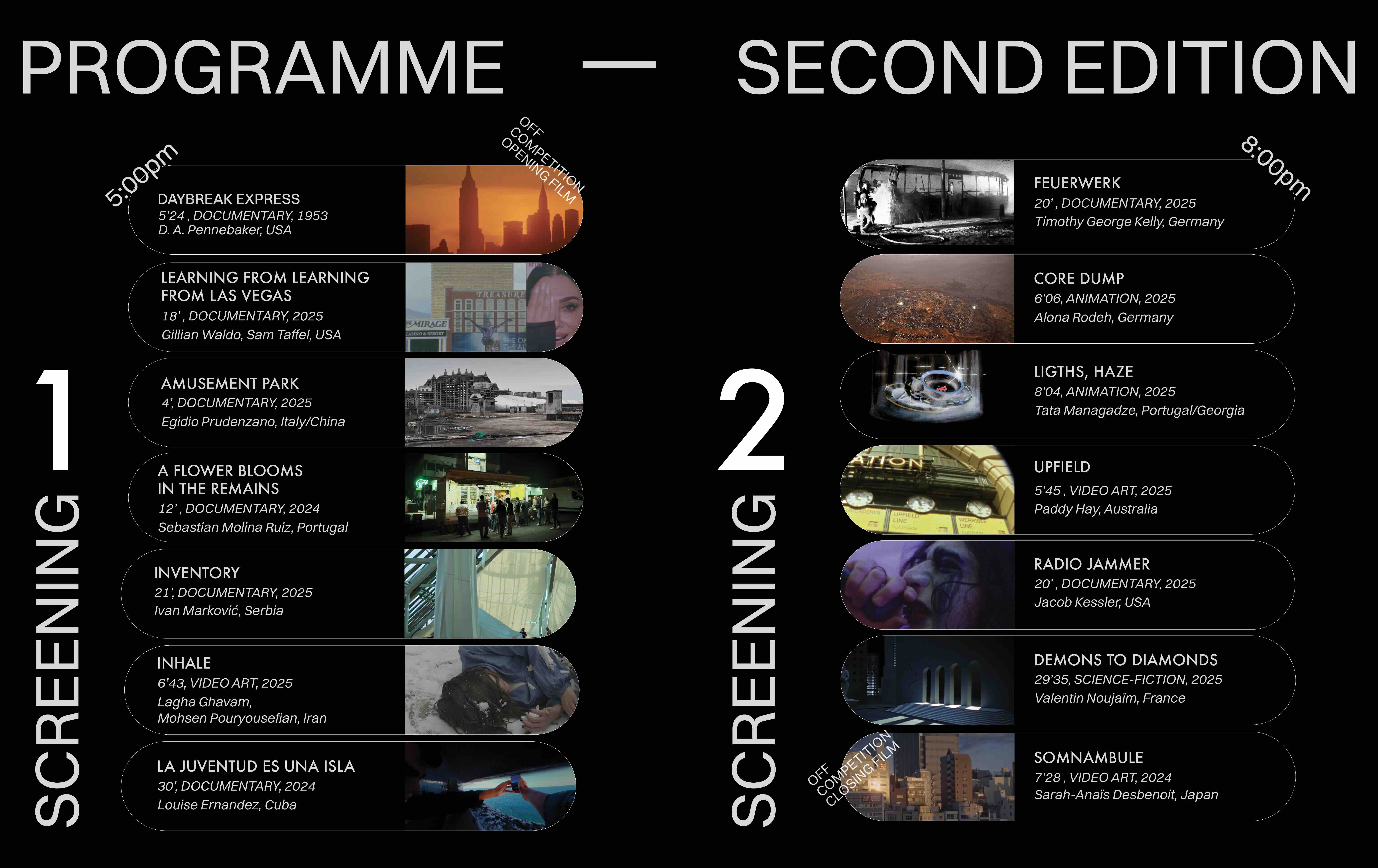 At the end of the evening, the members of the jury, formed by personalities with a professional background in both cinema and urban fields, will select 2 films from the official competition to be awarded.